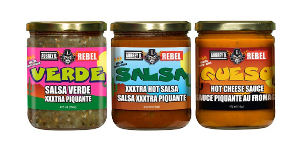 Montreal, Quebec, Canada (Sept. 7, 2021) − Football season is finally here, and with it comes those much-anticipated tailgate and in-home parties. When it’s your turn to host, you know you’re trying to top anything your buddies can put together. The best way to do that is to bring the heat – and that means Aubrey D. Rebel’s incomparable XXXtra Hot Salsa, Salsa Verde, Queso Hot Cheese Sauce, and all-natural spicy potato chips.