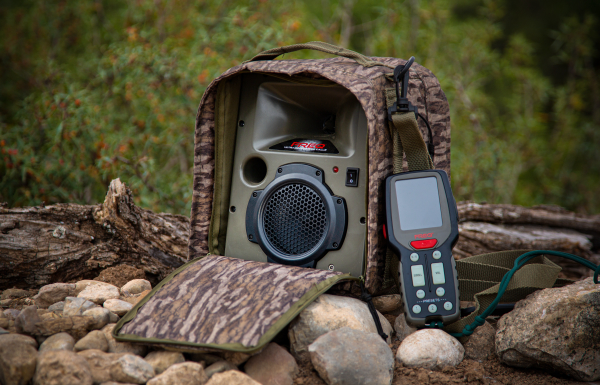 Built-in “Clever Case” - Buy most electronic game calls, and you’ll need also to buy a carrying case for that call. Or you’ll end up bringing a net along to cover up the shiny plastic call, so the incoming game won’t spook. A FREQ® u-call is built into a custom rugged camo carrying case that hides and protects your call while also providing ample storage for the remote, backup batteries, and easy-to-forget things like gloves, face covers, ammunition, and more. An integrated shoulder strap makes transport easy. A bug-out accessory bag is included.