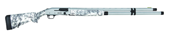 940 Snow Goose (85150) – When layers of snow geese are swirling in the sky above your blind, you want to be ready and this bold and functional 940 is up to the task. With its 28-inch barrel and extended magazine tube, you can load up to 12 rounds (2.75-inch shells) into the mag tube plus one in the chamber for a total capacity of 13 rounds. The vent-rib barrel is topped with a HIVIZ TriComp fiber optic front sight and comes equipped with an extended X-Factor ported choke tube (fully compatible with other AccuChoke tubes; sold separately). For ultimate concealment, the 940 Snow Goose has a Battleship Gray Cerakote finish on the receiver and barrel and the stock and forend feature TrueTimber Viper™ Snow camouflage. Rounding out this shotgun package is aggressive Mossberg signature texturing on the stock and forend; sling swivel studs; drilled and tapped receiver; and top-mounted safety for ease of use by right or left-handed shooters. MSRP: $1,120