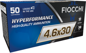 Developed for personal defense carbines, the new Hyperformance 4.6x30mm boasts a 38-grain bullet. The cartridge comes in 50-round boxes with ten boxes per case.