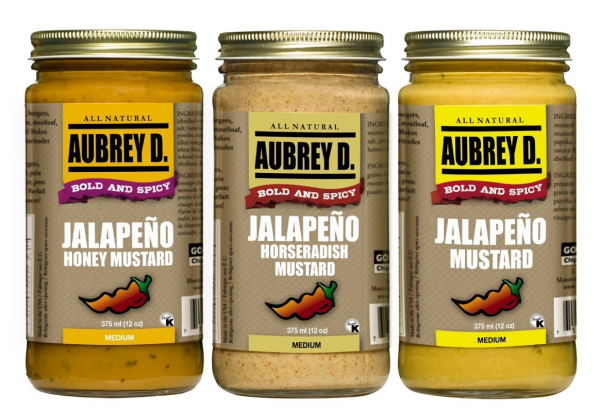 To kick it up a notch, why not substitute ordinary American or Dijon mustard with one of Aubrey D.’s spicy-hot mustard options -- Jalapeno Mustard, Jalapeno Honey Mustard, and Jalapeno Horseradish Mustard -- that are sure to have all your friends asking for more.