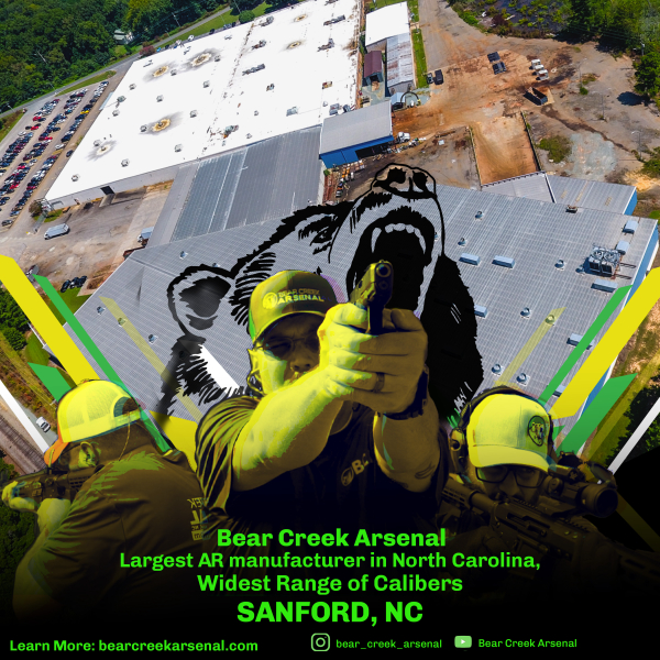 Established in 2013, Bear Creek Arsenal® has quickly become a leader in affordable AR-15, AR-10, our proprietary Rimfire ARs, PCCs, HuntMaster, and parts. With over 50 years of manufacturing and CNC experience, the founders of Bear Creek Arsenal® have always focused on producing high-quality, accurate, and reliable firearms for the everyday American. Manufacturing all key components in-house, in America allows Bear Creek Arsenal® to keep prices down while offering a huge variety of calibers and configurations for their customers.