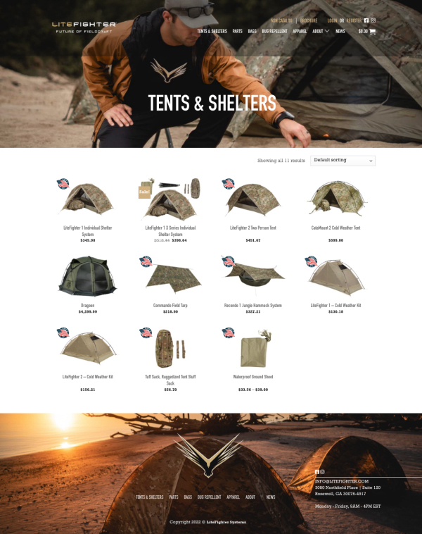 Outdoor Gear - From their Recondo 1 Jungle Hammock to the Commando Field Trap, the popular LF1 (1man tent) to the 4 season CataMount 2, LiteFighter offers shelter systems that are not only going to withstand the elements but will also be the easiest tent you’ve ever set-up! Because of their origin and heavy involvement in sheltering the U.S. Military, LiteFighter tents are designed for soldiers by soldiers, so you know they’re tough.