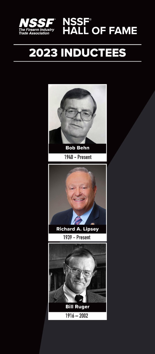The contributions of Bob Behn, Richard Lipsey and Bill Ruger, Sr., to industry and the shooting sports are recognized at the 2023 SHOT Show®.