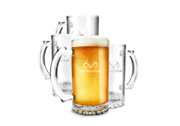 The set of four Beer Mug Glasses by Realtree holds 16oz of liquid with a total dimension of 5.25” tall x 3” wide opening. Each glass is laser etched with the Realtree logo, one of America’s favorite outdoorsman brands.