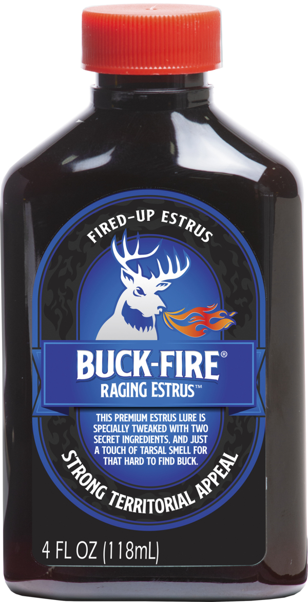 Buck-Fire® Raging Estrus™ is a tribute to the “Wild Bunch” at the old Northwoods deer camp. They were a heck of a bunch of hunters, out were the bucks weren’t that easy to come by. This carefully crafted Fired-Up Estrus Scent is specially tweaked with two secret, rut inspiring ingredients and just a touch of tarsal smell to help reach out to that hard to find buck. The strong sexual attraction and strong territorial appeal will really fire him up!