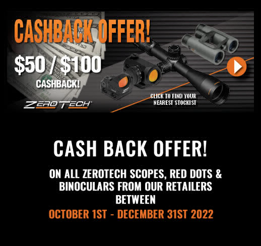 Part of this ambition is to give new and existing shooters an affordable option to get into a new optic for this season hunting, so we are pleased to announce our Q4 cashback promotion for the entire ZeroTech Optics range of products!