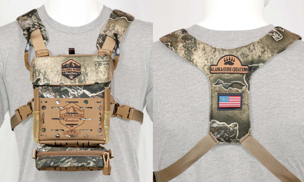 The Ravus' fully modular design allows for customization through addition or subtraction of accessories to the front, sides, and bottom of the pack. Connection of accessories is made possible by the Alaska Guide Creations durable laser panels that are made from laminated 500D nylon. Other new and existing Alaska Guide Creations Accessories can be attached to the Ravus Bino Pack including: AGC Holster, XL Holster, Black Arch Holster, In-line Accessory Adapter, Rangefinder Pouch, Mag Rangefinder Pouch, Bear Spray Holster, Bow Hook, and Cell Mag Pouch.
